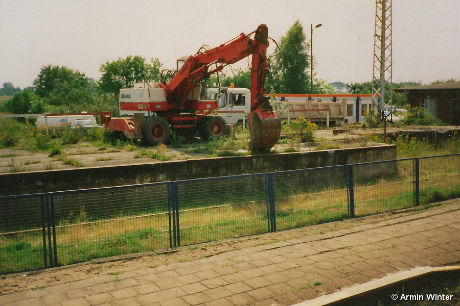 Im Bahnhof selbst waren noch einige vorbereitende Arbeiten zu erledigen, sodass das Personal nicht sofort abgezogen wurde. Es mussten noch einige Zugfahrten für die Bauzüge abgewickelt werden, die nun Schienen und Oberleitungen abtransportieren. Zudem musste das Bahnhofsgebäude durch die Aufsicht „besenrein“ übergeben werden. Erst als der Bahnhof  komplett abgeräumt worden war, wurde auch das Personal abgezogen und auf andere Bahnhöfe umgesetzt. (Lt. Erzählungen vom damaligen Aufsichtspersonal). Die Anlagen vom „alten“ Bahnhof sind zum großen Teil verschrottet worden. Einzig das Ausfahrvorsignal „VI“ ist heute noch erhalten wurde nach Aufarbeitung durch die Arbeitsgruppe Signaltechnik der Mecklenburgischen Eisenbahnfreunde Schwerin an das Technische Landesmuseum in Schwerin übergeben. Einen genauen Artikel darüber können Sie auf dieser Seite nachlesen.